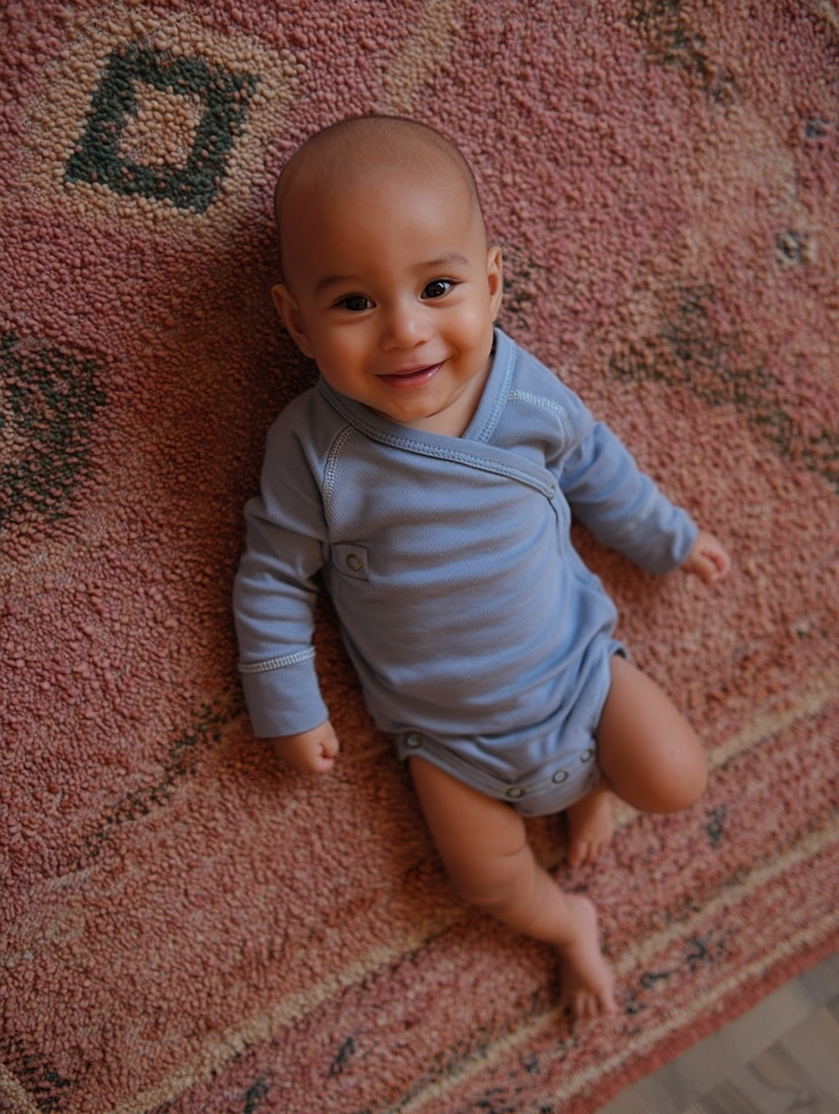 Der Strampler kann auch von Hand gewaschen werden, aber Vorsicht. Durch Auswringen oder Reiben des Stoffes kann die Wolle leicht beschädigt werden.