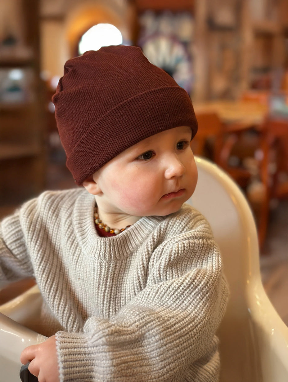 Gestrickter Wollpullover für Babys – Merinowolle – Knoblauch