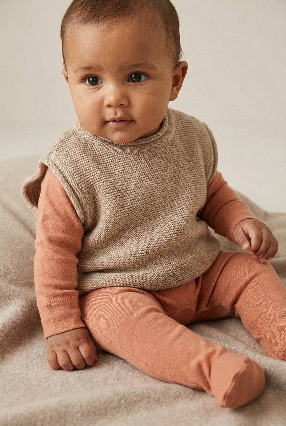 Baby-Strickjacke aus Merinowolle - Knoblauch