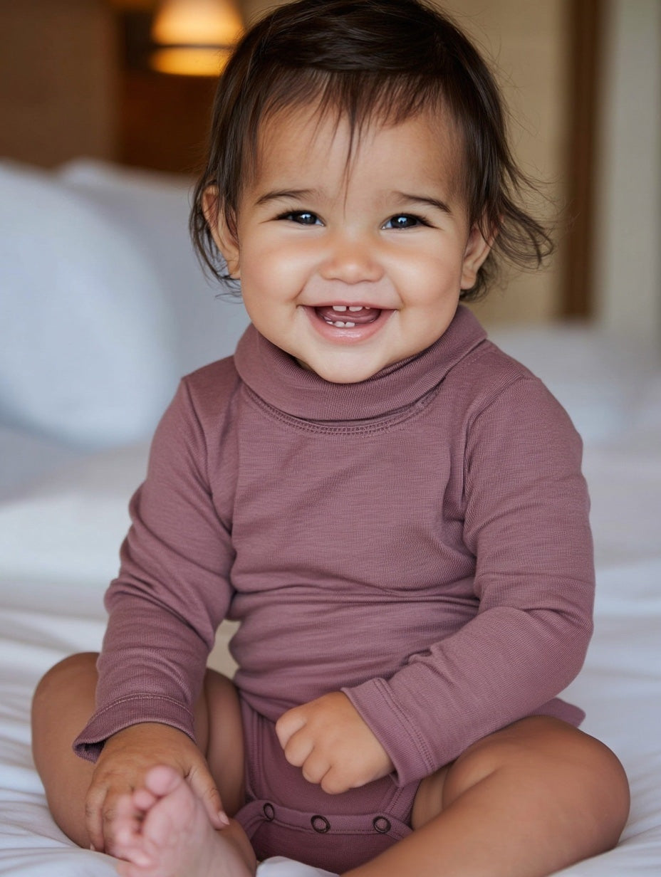 Langärmliger Woll-Strampler mit Rollkragen - Merinowolle - Lavender Mist